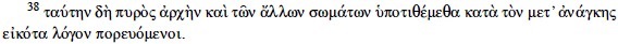 (3) no obstante, no podemos tomar como genuino principio al fuego, al agua, a la tierra, etc., como hacen quienes, equivocadamente, los llaman "principios" (48b7: