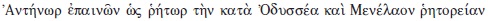 ... (Antenore) descrive la forma del discorso di Menelao attraverso l'impeto giovanile e la brevità laconica, chiamandolo conciso