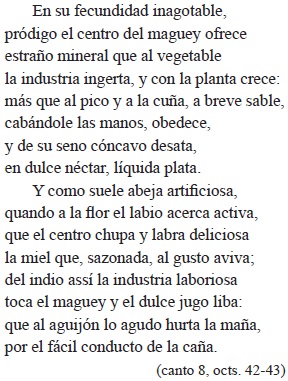 La elaboración de esta octava sobre la cera que arde como el pecho de Nueva España por el infante Felipe Pedro, en sus imágenes, factura y léxico debe no poco al cordobés: Mérida, pues, ofrece su mayor riqueza, "el codiciado fruto de la cera", descrito con el primor con que Góngora suele deleitarse cuando presenta los pequeños tesoros de la naturaleza.