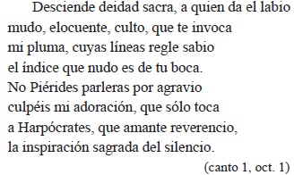 Para empezar notemos (no importa la brevedad de la cita, pues puede confirmarse en los siguientes pasajes) la ausencia de hipérbatos. Sin exagerar podríamos decir que prácticamente toda la lírica de la segunda mitad del siglo XVII recurrió al hipérbaton (en su mayor parte, mal entendido, reduciéndolo a un burdo desorden sintáctico) como ostentosa prueba de su adscripción a la poesía culta, y por poesía culta no se entendía otra cosa que la de Góngora.