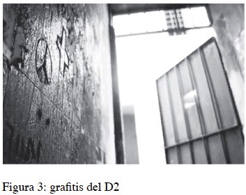 Lugar de una visibilidad en exceso, las palabras actuales elaboradas por el Archivo Provincial de la Memoria explican que las paredes de este antiguo Centro Clandestino de Detención aún conservan las marcas del horror. Grafiti en el interior de dos celdas, intactas, son la memoria presente de los que por allí pasaron.