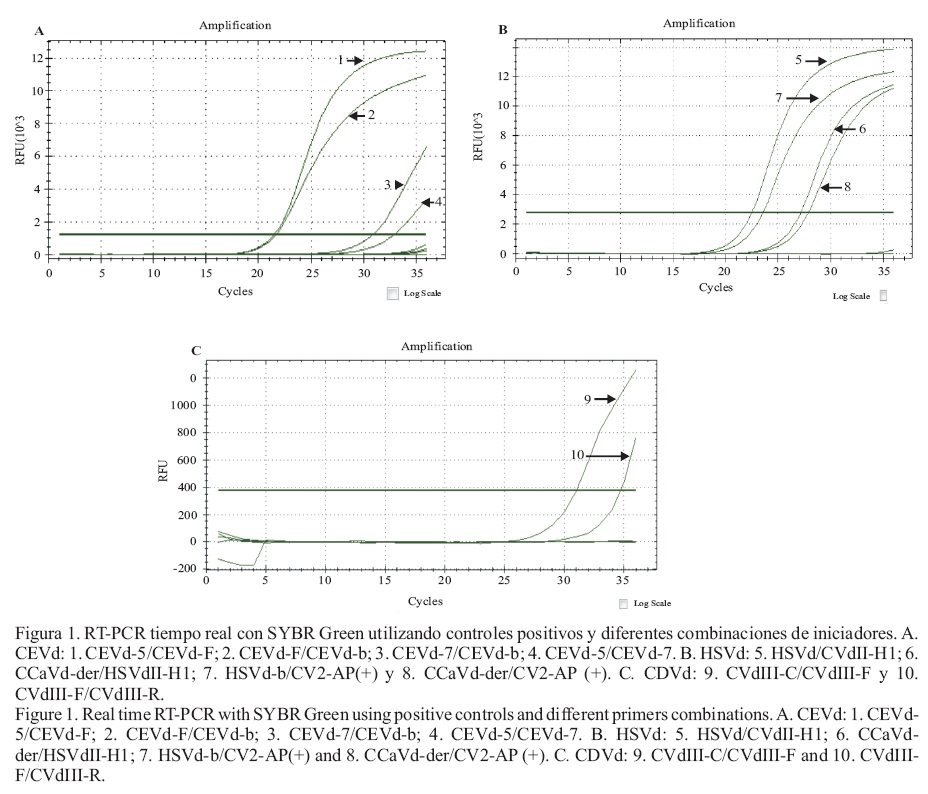 Palabras clave: RT-PCR, RT-PCR tiempo real, SYBR Green, CEVd, HSVd, CDVd.