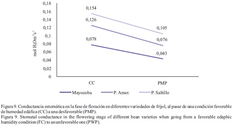 En general, las plantas desarrolladas a un contenido de humedad del suelo cercano a PMP, registraron una conductancia y transpiración significativamente menores y mayor eficiencia fotosintética.