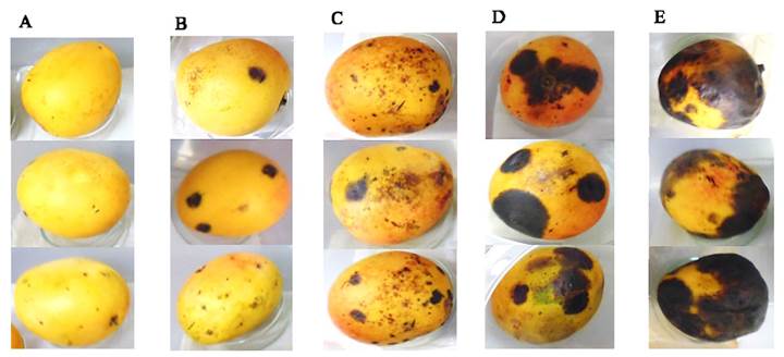 Table 2 Scale to evaluate the severity of anthracnose caused by C. gloesosporioides in mango cv. Azúcar. Values as percentages of the area of the fruits with symptoms.