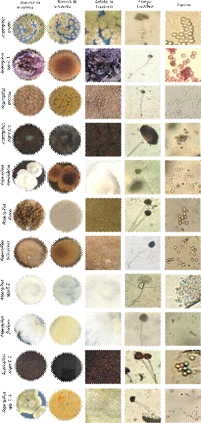 | Aspergillus C-3 | Verde | Amarillo | Plana | Moderado | Globosas |