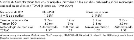 Los estudios sobre las anormalidades estructurales en el TDAH muestran una enorme heterogeneidad en la metodología de la adquisición y del procesamiento de las IRM. Por otro lado, la mayoría de los estudios se han realizado en niños del sexo masculino. Existen pocos artículos realizados en sujetos del sexo femenino y en adultos.