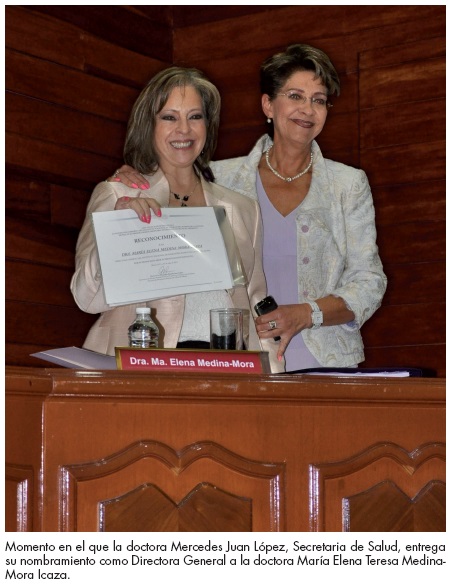 El pasado 30 de octubre se celebró en el Instituto Nacional de Psiquiatría Ramón de la Fuente Muñiz la solemne ceremonia de toma de posesión de la Directora General para su segundo periodo 2013-2018. El día 24 la Junta de Gobierno, por unanimidad, había aprobado el Plan de Trabajo Quinquenal 2013-2018 presentado por ella. Antes de la entrega de su nombramiento, el Coordinador General de los Institutos Nacionales de Salud y Hospitales de Alta Especialidad, el doctor Guillermo M. Ruiz-Palacios y Santos, leyó un resumen curricular de nuestra Directora, destacando el papel preponderante que ha desempeñado para la salud mental en nuestro país y señalando las altas instituciones de las que forma parte. Posteriormente la flamante Directora General presentó a la comunidad del INPRFM las principales líneas para desarrollar en esta nueva etapa y agradeció a todo el personal su colaboración para los logros alcanzados en el primer periodo de su gestión. La doctora Medina-Mora recibió un caluroso reconocimiento de parte de todos sus colaboradores y de las autoridades presentes.