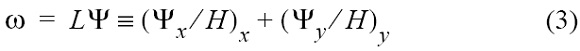 where ƒ(x, y) is the Coriolis parameter associated with planetary vorticity, o = vx - uy is the relative vorticity, and H(x, y) is the depth of the sea. Under the condition of a "rigid lid" at the surface, o is defined by means of the integral streamfunction V using the well-known relation