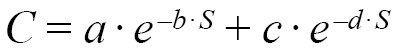 donde C es la concentración del metal, S es la salinidad y a, b, c y d son los parámetros de ajuste para cada metal.