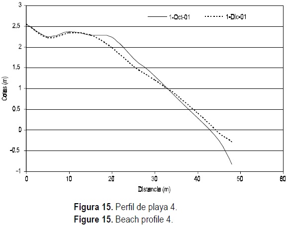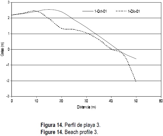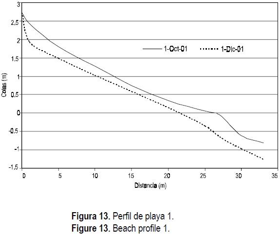 En general, en los perfiles de playa se observa que el proceso erosivo debido al oleaje y las corrientes continúa, y éste sólo se estabilizará cuando el perfil de playa alcance las nuevas condiciones de equilibrio.
