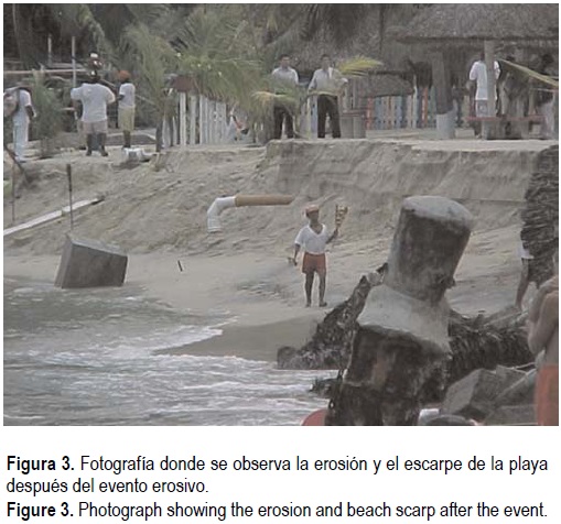 Durante los días siguientes al evento, la playa continuó su proceso erosivo, ya que como el sistema se encontraba desestabilizado con los cambios de pendiente del perfil de playa, la acción natural del oleaje y las corrientes tendían a estabilizar el nuevo perfil de playa. En algunas inmersiones realizadas por medio de buceo autónomo se pudieron observar las pendientes pronunciadas del perfil costero y el movimiento de arena pendiente abajo. Este comportamiento persistió durante varios días; sin embargo, el 27 de septiembre se manifestó un nuevo evento que afectó la playa, pero en entonces fue la marejada ocasionada por el huracán Juliette, la cual persistió hasta el 29 de septiembre ocasionando un proceso erosivo más intenso.