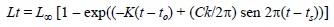 donde C es la amplitud de oscilación del crecimiento, to es el tiempo a partir del cual comienza a crecer el bivalvo, y ts es el periodo del año cuando el crecimiento es máximo. Estos métodos, basados en el análisis de datos de frecuencia de longitud, forman parte del paquete computarizado FISAT (Gayanillo and Pauly, 1997).