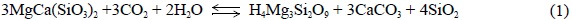 La segunda línea de investigación abierta para la fijación de CO2 a largo plazo está basada en provocar reacciones de carbonatación mediante la inyección de CO2 en sedimentos (Seifritz, 1990; Lackner et al., 1995, 1998; Lackner, 2003). La carbonatación a partir de la disolución de minerales, principalmente silicatos, es un mecanismo que mimetiza los procesos que regulan de forma natural el ciclo del carbono a largo término (Murray y Wilson, 1997) a través de la ecuación de Urey (1952) en la que se establece el balance general entre carbonatos y silicatos en sistemas geológicos.