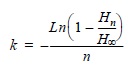 donde Hn es el número de oocitos en n gramos; H∞ es el valor asintótico del máximo número de oocitos y k es la rapidez con que se incrementa el número de oocitos.