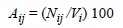 donde Aij es el número de larvas de clase de talla j en 100 m3 en la estación de muestreo i, Nij es el número de larvas de clase de talla j en la estación de muestreo i, y Vi es el volumen filtrado (m3) en la estación de muestreo i.
