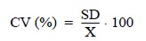 Para el estudio de la reproducibilidad interlaboratorio se calcularon los coeficientes de variación (CV) para cada una de las muestras dividiendo la desviación estándar (SD) por la media de los laboratorios (X),