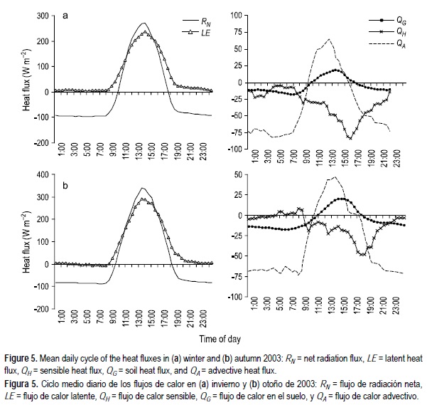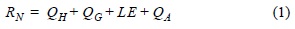 donde RN es la radiación neta [W m-2], QH es el flujo de calor sensible [W m-2], QG es el flujo de calor en el suelo [W m-2], LE es el flujo de calor latente [W m-2] y QA es el flujo de calor advectivo [W m-2].