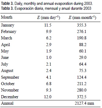 Los resultados de evaporación anual (5227 MJ m-2, equivalentes a 2127 mm) son similares a los obtenidos en la región por Varela (2002), quien estimó una evaporación anual de 2123.9 mm para el periodo 1994-1999 en Embalse Casa de Piedra (38°12' S, 67°02' W). Un estudio previo efectuado en el estuario de Bahía Blanca durante el periodo 1983-1984 (Sequeira y Píccolo 1985) señaló al flujo de calor en el suelo como uno de los flujos calóricos más importantes. Los resultados presentes, sin embargo, sugieren que los flujos dominantes son la radiación neta y el flujo de calor latente. Las diferencias entre los resultados obtenidos por ambas investigaciones se debieron probablemente a variaciones en las condiciones meteorológicas o a la aplicación de diferentes métodos en la estimación de los flujos de calor. Hoffmann et al (1997) estudiaron el clima del Océano Atlántico suroccidental y presentaron una tabla climática para el área localizada entre 35-40° S y 60-50° W. Los valores de radiación neta registrados en el área oceánica fueron similares a los obtenidos en el interior del estuario de Bahía Blanca durante 2003; la radiación neta media anual fue de 107 W m-2 en el océano y de 94 W m-2 en el estuario. En las estaciones frías, la evaporación en la cabecera del estuario y en la zona oceánica mencionada mostró magnitudes similares. Sin embargo, durante el verano la evaporación en el interior del estuario fue ~3.5 veces mayor que en el océano. Finalmente, el flujo de calor sensible presentó valores medios anuales de 4 y -30 W m-2 en el océano y el estuario, respectivamente.