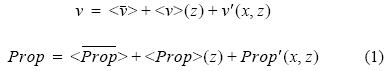 , respectivamente), (ii) un perfil baroclínico de valores lateralmente promediados en cada profundidad (<v>(z) y <Prop>(z)), y (iii) las desviaciones laterales (anomalías) para cada par de estaciones y profundidad (v'(x, z) y Prop'(x, z)). Por lo tanto,