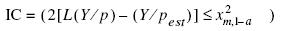 donde L(Y/pest) es el logaritmo de la verosimilitud del mejor valor de p y χ1,1a2 es el valor de la distribución chi cuadrada con un grado de libertad a un nivel de confianza 1 α. Así, el intervalo de confianza al 95% para p abarca todos los valores de p, que es dos veces la diferencia entre el logaritmo de la verosimilitud y el logaritmo de la verosimilitud del mejor estimado de p, que es menor de 3.84 (Kimura 1981, Polacheck et al. 1993 and MoralesBojórquez 1999 en MoralesBojórquez et al.2001).