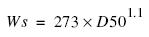 Para determinar la velocidad de asentamiento de la partícula (Ws) se empleó la fórmula de Toledano y Silva (2005), quienes trabajaron con arenas de playa de la región de estudio con arenas finas biogénicas carbonatadas, y basados en Bruun (1954) y Dean (1977) para partículas carbonatadas cuya mediana (D50) está entre 0.1 y 1 mm: