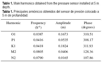 Los descriptores de oleaje se obtuvieron con un sensor de presión instalado en un perfilador de corrientes acústico doppler (ADCP, Acoustic Doppler Current Profilers), con una precisión de 0.1%. El equipo fue fijado a una estructura metálica piramidal de 50 cm de alto e instalado a una profundidad de 5 m. La localización del instrumento respondió a facilidades logísticas y a la homogeneidad del fondo de la plataforma de Yucatán, así como a la dirección dominante del oleaje que permite suponer que las características registradas por el instrumento se aplican en general para toda el área de estudio. El muestreo comprendió un total de 22 meses entre marzo de 2004 y octubre de 2006. Por motivos de mantenimiento del equipo se suspendió el registro en 3 meses en 2004 y 6 meses en 2005. El instrumento fue programado para realizar mediciones continuas durante los primeros 5 minutos de cada hora a una frecuencia de 1 Hz (300 mediciones por hora) y almacenar en una memoria interna los valores medios de Hs (cm) y Tp (s) que describen la altura media de ola del tercio de alturas mayor y el período máximo de los trenes de olas, respectivamente.