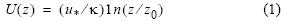 donde U es la velocidad media, z es la altura sobre el fondo, u* es la velocidad friccional, κ es la constante de von Karman (= 0.4) y z0 es la escala de rugosidad del fondo. Mediante el ajuste lineal de U(z) vs ln (z) se obtienen la pendiente (κ / u*) y la intersección (z0). Este procedimiento (método del perfil) se ha empleado para obtener el coeficiente de fricción (CD), el esfuerzo de corte en el fondo (τ 0), la rugosidad del fondo (z0) y la difusividad turbulenta (Kz) para varios tipos de corrientes oceánicas, estuarinas y fluviales. El esfuerzo de corte es el principal control de la erosión, resuspensión y asentamiento de los sedimentos finos. Características del lecho tales como la distribución de sedimento, formas y rugosidad del fondo dependen de la distribución del esfuerzo de corte. Los parámetros de la capa límite son específicos para cada sitio, en virtud de que el método del perfil se basa en observaciones de corriente en un punto. Cuando este modelo se aplica a corrientes casi estacionarias como las de marea, deben evaluarse cuidadosamente las condiciones de estratificación, topografía del fondo y uniformidad del flujo a fin de reducir las desviaciones con respecto al perfil teórico. Para la corriente de marea se ha definido la velocidad media como el promedio sobre 10 a 30 minutos para minimizar los problemas de no estacionaridad asociados con el forzamiento de la marea, suponiendo que no existen movimientos energéticos con periodo similar al tiempo sobre el cual se promedia (Gross y Nowell 1983, Soulsby 1983, Trowbridge et al. 1998).