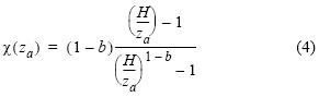 donde z denota la posición vertical, ca es la concentración de equilibrio en el nivel de referencia za, y b = (acws)/ku*, siendo ac el número de Schmidt turbulento (
