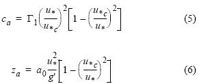Existe una amplia variedad de parametrizaciones para determinar el nivel de referencia za y la concentración de sedimento en suspensión ca en esta altura. De todas ellas, según García y Parker (1991), las que mejor comportamiento ofrecen frente a los datos experimentales son las de Van Rijn (1984) y Smith y McLean (1977). Por tanto, siguiendo a Smith y McLean (1977):