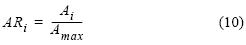 donde AR es la abundancia relativa de la talla i, Ai es el número de individuos de la clase de tallas i y Amax es el número de individuos máximo de la clase de tallas i dentro del rango de tallas considerado ese año.