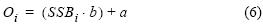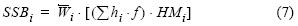 donde a y b son los parámetros de la curva fecundidadpeso total estimada anualmente para cada población (ecuación 1), y SSBi es la biomasa de hembras maduras de talla i, estimada a su vez por: