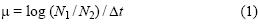 donde N2 y N1 son las concentraciones celulares al final (t2) y al inicio (t1) de un periodo de tiempo, Δt es t2 t1.