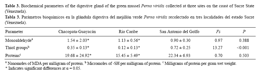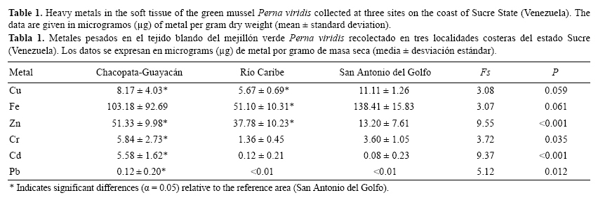 Heavy metals and related biomarkers in Perna viridis (Bivalvia: Mytilidae) collected on the coast of Sucre State, Venezuela