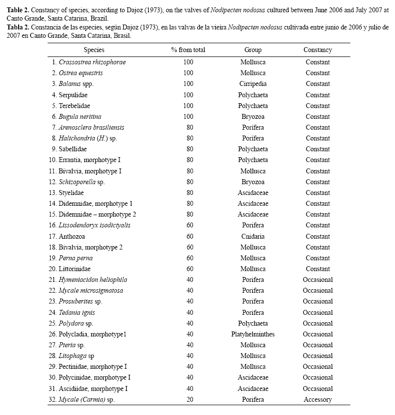 Caracterización de la comunidad de macroinvertebrados incrustantes sobre la vieira Nodipecten nodosus (Mollusca, Pectinidae) cultivada en Santa Catarina, Brasil