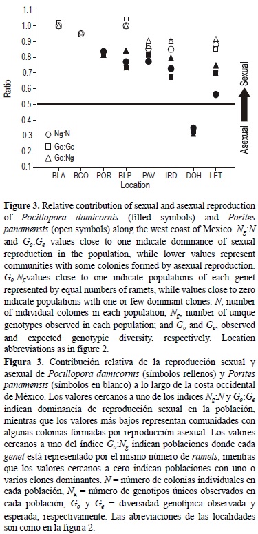 Key words: sexual reproduction, genotypic diversity, reproductive mode, genetic composition, Eastern Pacific.