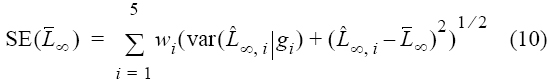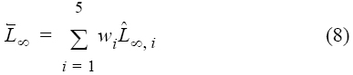 ∞) como la suma del producto de L∞ multiplicada por su correspondiente wi para todos los modelos candidatos aceptados, según la siguiente ecuación: