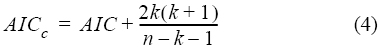 donde n es el número de observaciones y k es el número de parámetros en el modelo.