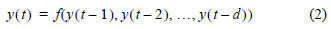 where d is a time-delay parameter that defines the number of past samples, and the function f (·) is the forecasting NAR model.