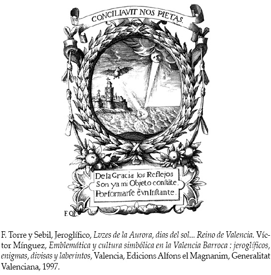 16 He estudiado la cultura emblemática de la ciudad de Valencia en Víctor Mínguez, Emblemática y cultura simbólica en la Valencia barroca (jeroglíficos, enigmas, divisas y laberintos), Valencia, Edicions Alfons el Magnánim, 1997.