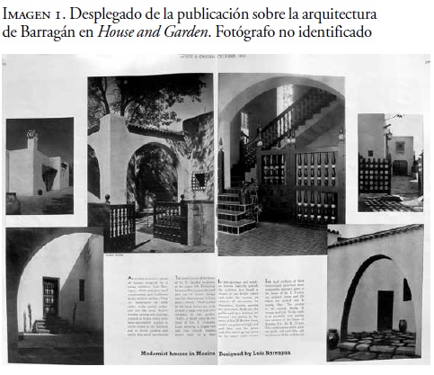 Contrastando con "Villas mexicanas", el artículo "Casas modernistas en México diseñadas por Luis Barragán" de House and Garden inscribe el trabajo de Barragán dentro del movimiento de arquitectura moderna y da la información nacional como un dato netamente geográfico. Mientras que el título "Villas mexicanas" hace al trabajo de Barragán inherentemente mexicano, el de House and Garden lo hace modernista y simplemente localizado en México. Sin embargo, las fotografías que ilustran el artículo también distancian al trabajo de Barragán de ser estructuras de geometría simple, materiales industriales y desnudas de ornamento; en ellas se yuxtaponen elementos ornamentales hechos a mano en madera o barro y fragmentos de edificaciones. La composición general de las casas no se puede percibir ya que el artículo no ofrece una vista completa de ninguna de las residencias que ilustra, la publicación pareciera ser más un artículo sobre detalles arquitectónicos y decorativos que sobre el trabajo compositivo de lo que entonces se entendía como un arquitecto moderno. Los arcos también son recurrentes en este artículo: una fotografía usa un arco como su principal elemento compositivo, dos más tienen arcos como sus elementos arquitectónicos más prominentes, y en la cuarta un arco enmarca la vista; con respecto a los elementos ornamentales, celosías de madera torneada son los elementos predominantes. Por último, dos imágenes muestran la interrupción de las aristas superiores de las formas cúbicas con inserciones de teja y un tiro de chimenea rematado a su vez por un complicado ornamento.