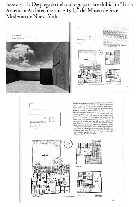 En 1955, Barragán proporcionó una fotografía de su casa estudio para su inclusión en la exhibición del MoMA "Arquitectura latinoamericana desde 1945" que posteriormente circuló en el mundo. La fotografía, con su sencilla composición de muros ortogonales de diferentes alturas, un juego de sombras, una fuerte textura y una cruz, parece emparentada con las imágenes publicadas veinte años antes. A diferencia de estas últimas, la imagen se difundió acompañada por un texto que proporcionó un cierto entendimiento de su obra que a partir de entonces comenzaría a perpetuarse. Escrita en el extranjero, en el MoMA una institución comprometida con las artes populares de México y después de la incursión por parte de Barragán en una estética derivada de Le Corbusier, la descripción diseminó por el continente americano la obra de una arquitecto que en 1976 se describiría como "huyendo de todo lo internacional". Según Henry-Russell Hitchcok curador de la exhibición "El vocabulario de Barragán no deriva de la arquitectura internacional moderna. Tradicional en sus materiales y de una escala robusta, su arquitectura representa un muy sofisticado manejo de métodos constructivos provinciales de México".