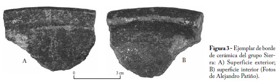El primer grupo pertenece mayoritariamente a cerámicas monocromas anaranjadas, rojas, negras y sin engobe de los Grupos Iberia, Sierra, Polvero y Zapote, siendo predominantes los materiales del segundo grupo. Se caracterizan por sus acabados cerosos, desgrasantes de tiestos en las pastas y particularmente la consistencia blandísima de estas pastas, lo que indica una mala cocción de vasijas resultante de exposición a una fuente de calor con una muy baja temperatura. Este conjunto de cerámicas se encuentra sobre todo dentro de la matriz de suelos arcillosos localizados por debajo de etapas de construcción, pero nunca aparecen asociados a elementos arquitectónicos como ocurre con el primer grupo (Patiño, 2013). El inventario de formas documentado para estos materiales incluye recipientes con paredes rectas, fondos planos y bordes engrosados con labios cuadrados, con incisiones poco profundas hechas antes de aplicar el engobe y cocer la vasija, recipientes con boca restringida, cuerpo globular u ovoide, cuello largo y bordes ligeramente inclinados hacia adentro, vasijas hemisféricas con bordes directos, recipientes no engobados con cuerpo globular, cuello corto y bordes ligeramente curvados hacia fuera. Para una discusión más detallada sobre la cronológica relativa establecida para el periodo Clásico Temprano con base en seriaciones de materiales provenientes de excavaciones, véase Patiño, (2013, capítulo 4).