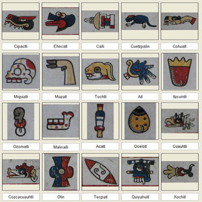 Lo que caracteriza al mundo del tonalli es la presencia de glifos compuestos por un número entre el 1 y el 13, acompañado por una de las 20 palabras utilizadas para nombrar a los días. Esos glifos se pueden reconocer en todos los códices tradicionales o tardíos: