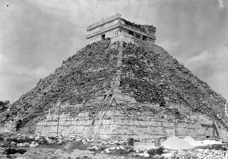 En esos tiempos, las explicaciones giraban en torno a la presencia de una deidad conocida como Kukulcán, que fundó la ciudad, pero no daban mayor detalle sobre su relación concreta con la principal estructura. Estas mismas interpretaciones comenzaron a surgir con la llegada de la arqueología sistematizada del equipo de la Carnegie Institute of Washington (CIW) liderada por Sylvanus Morley con la supervisión inicial de Earl Morris a principios del siglo XX.
