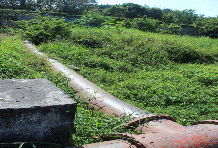 Figure 6 Photo des canalisations qui acheminent l’eau de la source et suivent le tracé de l’ancien canal Casasano (2014).