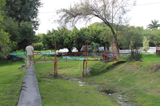 La disparition du canal a aussi bouleversé le rapport idéel que la population maintenait avec son territoire, son sentiment d’appartenance et d’identification aux lieux. Même si le centre aquatique existe toujours aujourd’hui, le remplacement des canaux à ciel ouvert par des canalisations enterrées a induit de tels changements dans le paysage que les ejidatarios ne s’y reconnaissent plus. Depuis que l’eau du manantial est pompée et ne jaillit plus à la superficie, le réservoir où naît la source n’est plus nettoyé et fait miroiter ses eaux stagnantes. L’existence du centre aquatique a permis d’éviter l’accumulation des déchets, mais le lit du canal n’est plus qu’une dépression de terre et les ponts et les différentes retenues d’eau qui ponctuaient le parcours du canal n’ont plus aucune utilité (Figure 8 et 9).