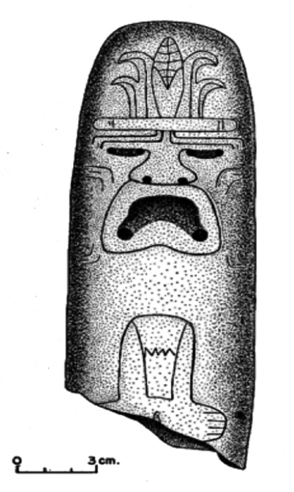 Figura 7 Lo sobrenatural fantástico. Escultura tipo hacha olmeca realizada en piedra verde. Colección del Museo Nacional de Antropología.