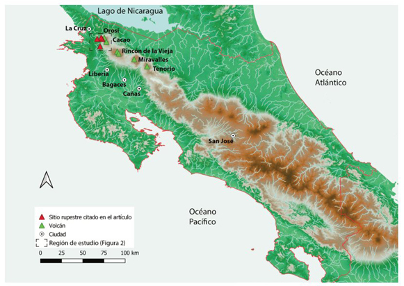 En la cordillera de Guanacaste, no es común encontrar investigaciones en las cuales se intenten realizar dataciones indirectas de los petroglifos y solo raras veces se ha registrado la presencia de artefactos asociados fechables. Lo anterior contrasta con la amplia divulgación de representaciones rupestres y su enigmático significado simbólico, pero con una falta de investigaciones sistemáticas que intenten acercarse más estrechamente a este tipo de vestigios en roca.