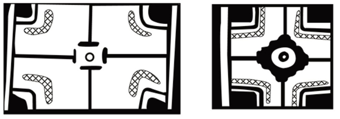 Como ya se aludió, dentro de los diseños mostrados en el grabado, podemos encontrar algunos abstractos, lineales y el motivo de cruces cuadradas concéntricas; a este último le daremos especial énfasis dado que se puede relacionar más claramente con otros diseños presentes en objetos que se pueden fechar cronológicamente.