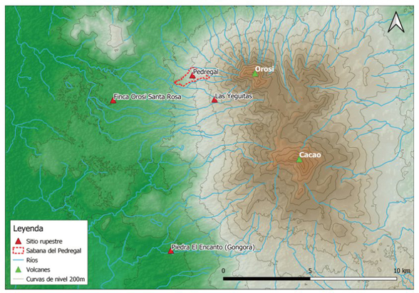 Ubicado dentro del Área de Conservación Guanacaste, el Pedregal representa, por su gran cantidad de petroglifos ubicados en un espacio relativamente reducido, no solo un sitio clave para las investigaciones en la Cordillera, sino que es uno de los más importantes de arte rupestre de América Central. Sus rocas decoradas, situadas en las faldas occidentales del volcán Orosí y diseminadas en dos sábanas con 132 ha de extensión, fueron registradas por primera vez por Chávez Jiménez (1989).